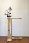 Looking On 65" x 15" x 14" handmade paper, pulp paint, fabric, paper mache, wood, plaster, 2021